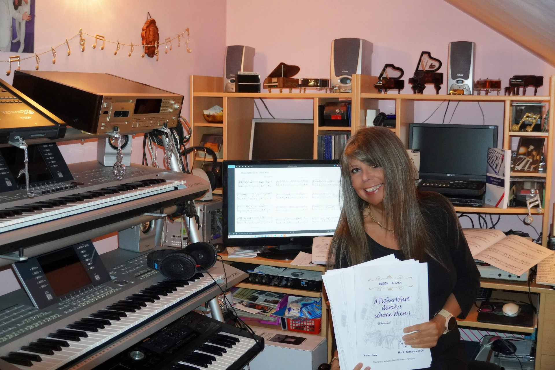 Derzeit arbeitet und komponiert Katharina Bach an ihrem 1. Wienerlied - die Grafiken für den Notenband sind inzwischen fertig, die Noten werden gerade geschrieben und in Kürze in einer Wiener Druckerei verarbeitet.